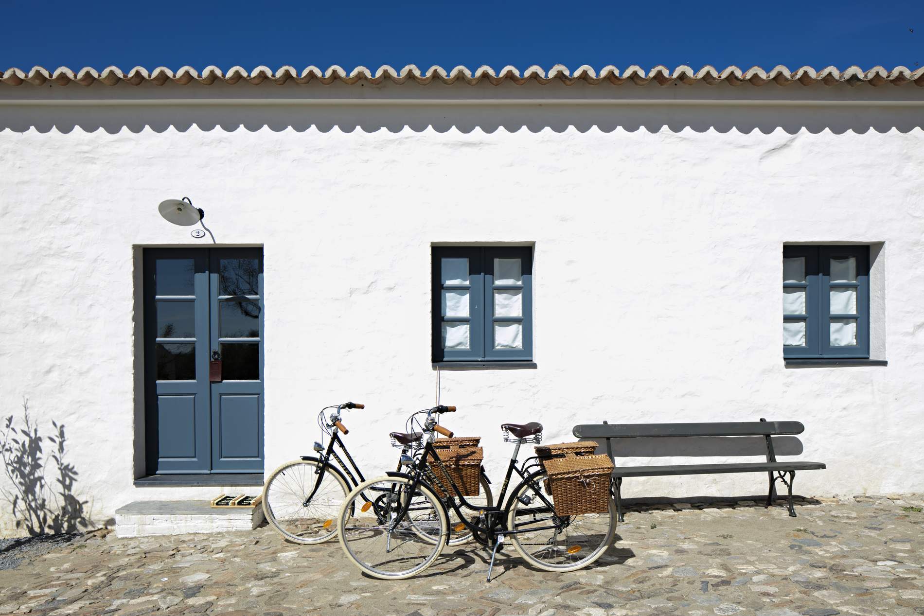 As part of the farm’s transformation, barns and workrooms have been renovated into minimalist chic lodgings of 22 guest rooms, 2 suites and 16 cottages. All are designed using a combination of vintage and hand-crafted furniture, old photographs and trinkets, and custom rugs under the expert eye of Lisbon interior designer, Ana Almeida. Amid a backdrop of red-tiled floors, light woods and soft blues and greens to complement the exterior white-washed buildings, it works beautifully.