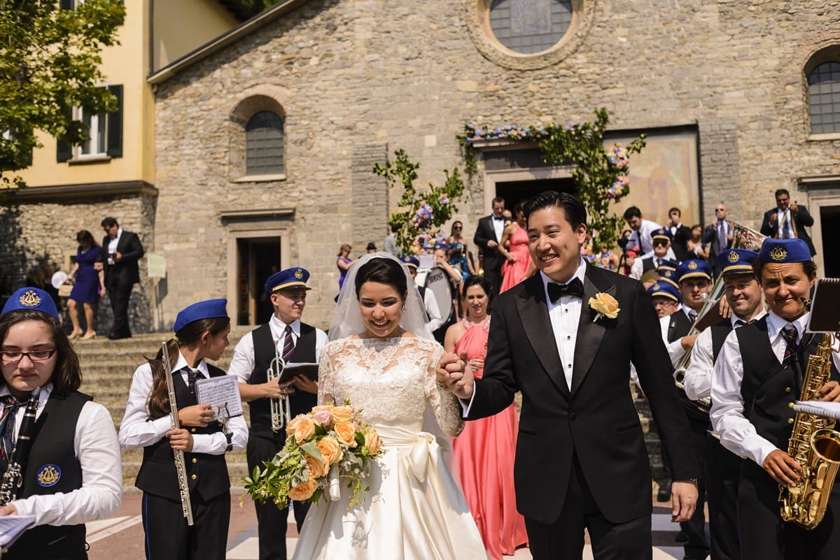July 6, 2013 came as quickly as we had imagined, but the anticipation could not be contained much longer. Guests were transported by boat from our hotel in Moltrasio to Varenna, a rustic, old-world-feel picturesque town where our religious ceremony was held (and apparently is one of only a handful of places that allows non-Italians to have a Catholic ceremony). The church where we wed was built in 1313 and going back to how our meeting in Vegas was fate, our wedding date also reflected this. I’m not into numerology, but how crazy is it that 7.6.13 (our wedding date) is 7+6 = 13, 13!? After we tied the knot a 12-piece marching band a la Godfather awaited us outside the church and followed us through the narrow streets serenading us while guests enjoyed local gelato. Francis Ford Coppola would have been pleased.